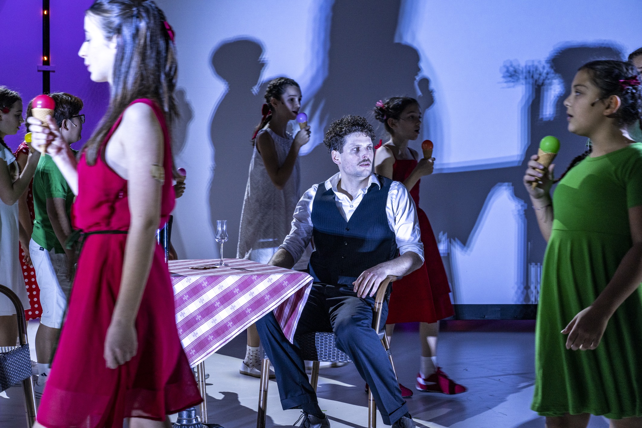 Eigentlich der Chor gewährt uns Einblicke ins Innenleben von Mario – Joshua Miro Ebsen -, Kellner im Exposito, als Eisverkäufer Kinderliebling, emotional zerrissener, unprofessioneller aber absolut überzeugter Schützer seines Heimatortes.