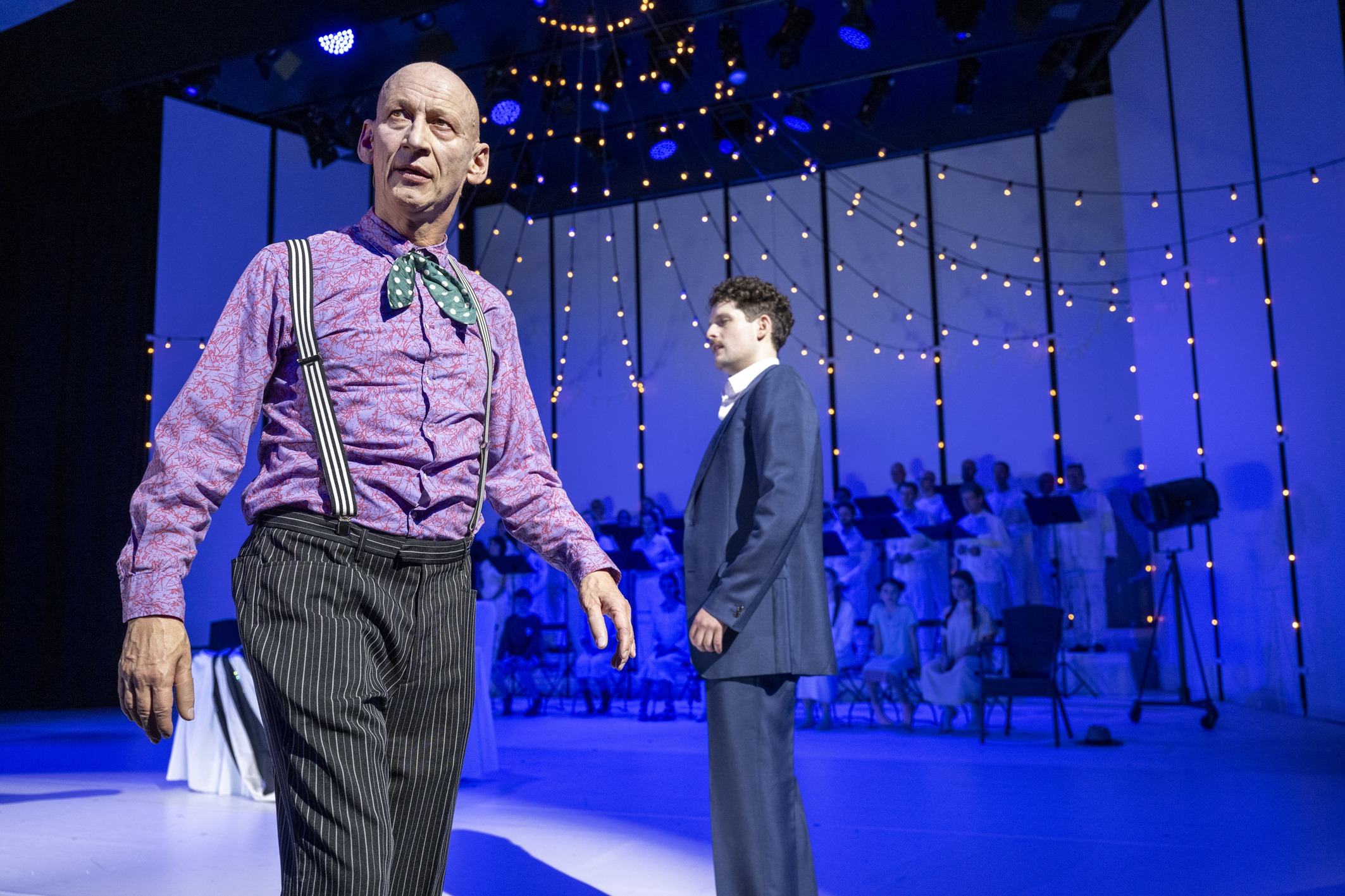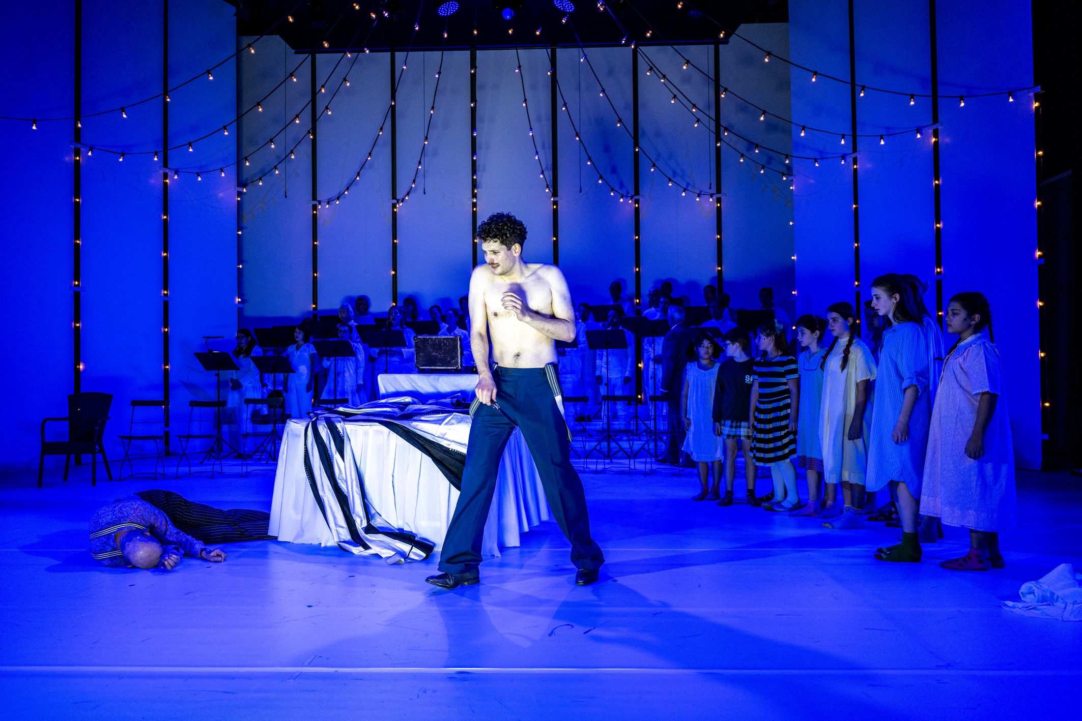 Zum ersten Mal übernahm ein Chor jenen Part, der üblicherweise von Instrumenten gespielt wird. Als herausragendes „Orchester der menschlichen Stimmen“ waren 28 Sänger*innen des SWR Vokalensembles aus Stuttgart zu erleben. Zur „musikalischen Masse“ im Bühnengeschehen gehörten darüber hinaus 12 Kinder des wunderbaren Salzburger Festspiele und Theater Kinderchors.